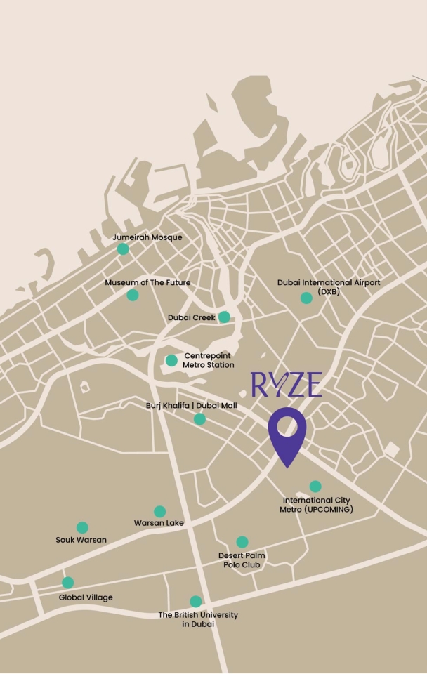 Located in Warsan, close to Academic City, RYZE sits within one of Dubai’s most promising growth corridors. Surrounded by universities, emerging communities, and upcoming infrastructure, the area offers daily convenience today and long-term value for tomorrow.